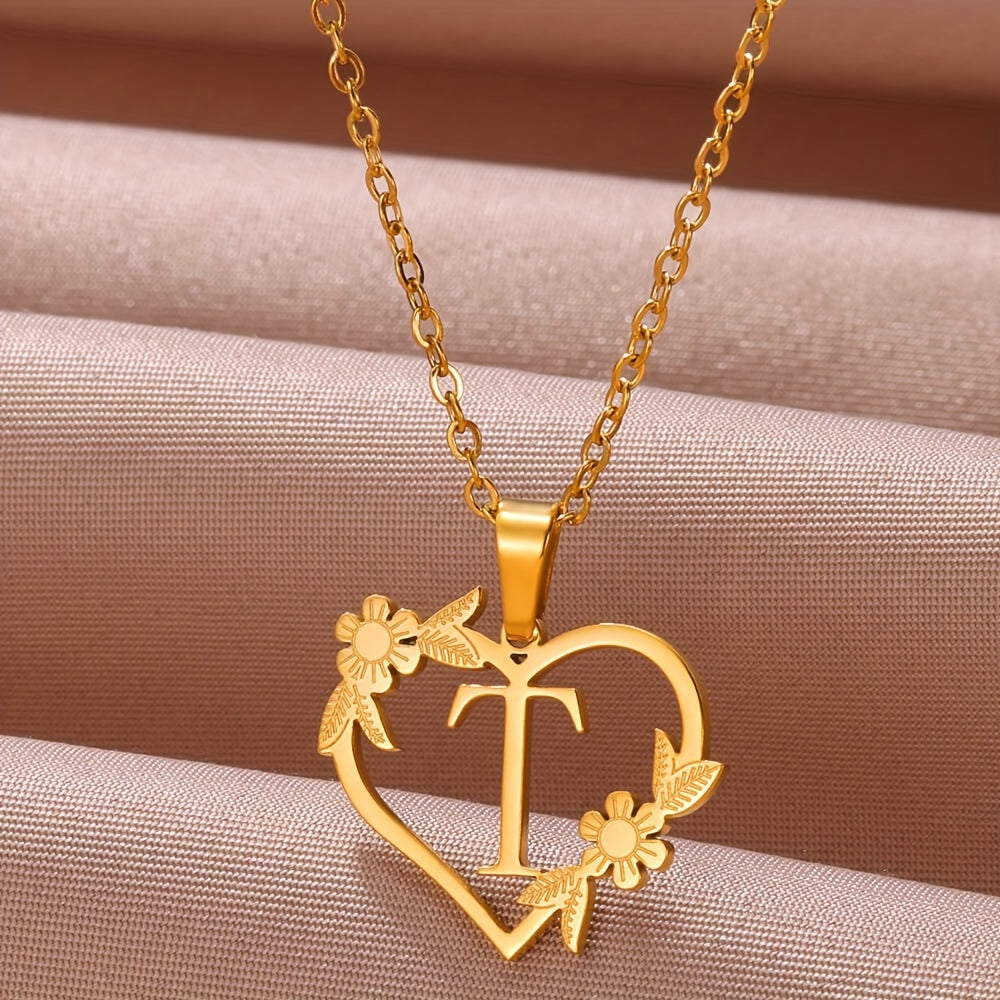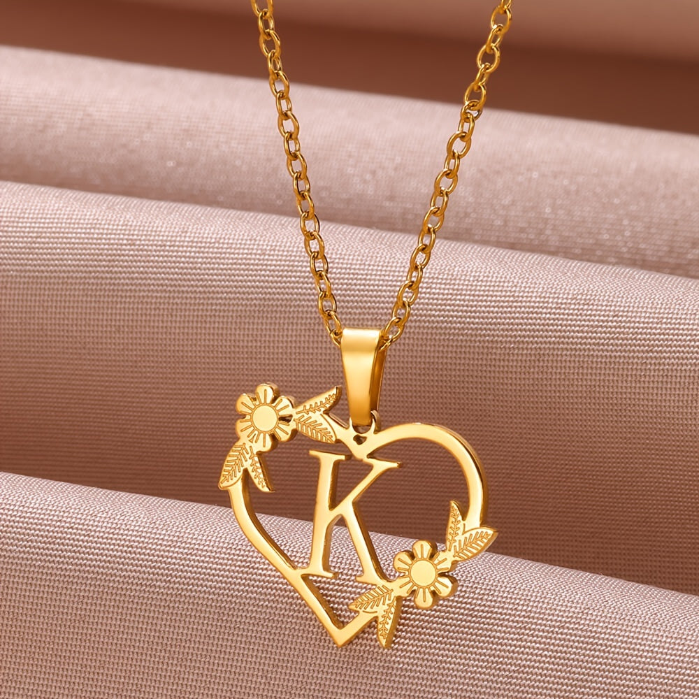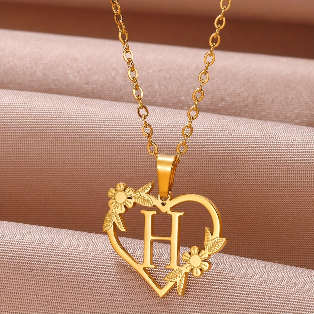 قلادة تصميم حرف نمط زهرة قلب ذهبي فارغ أنيق بسيط مطلي بالذهب عيار 18 قيراط هدية مجوهرات للعشاق