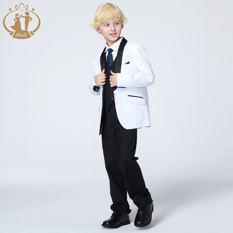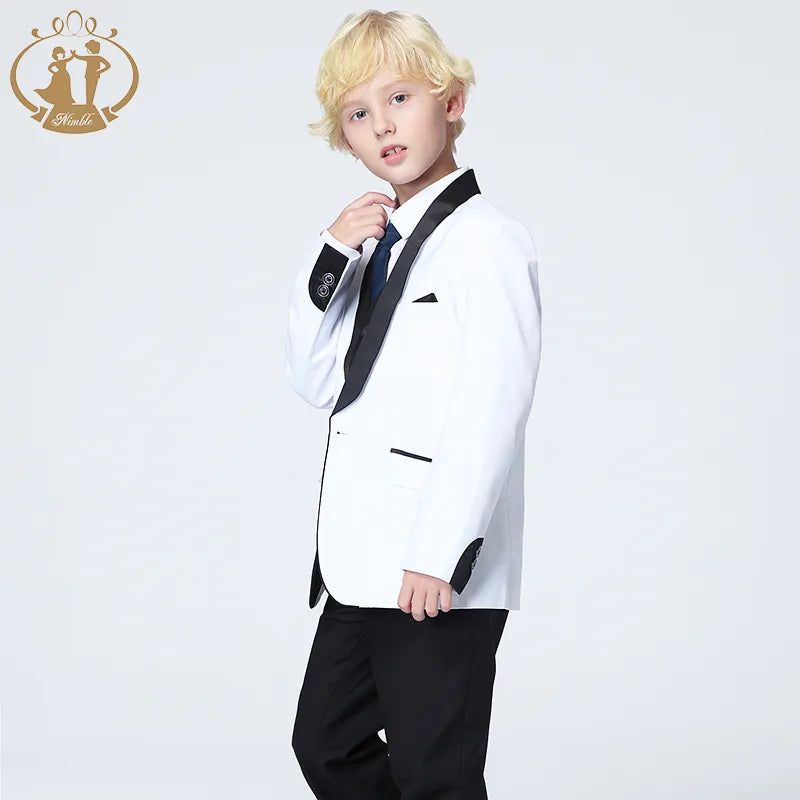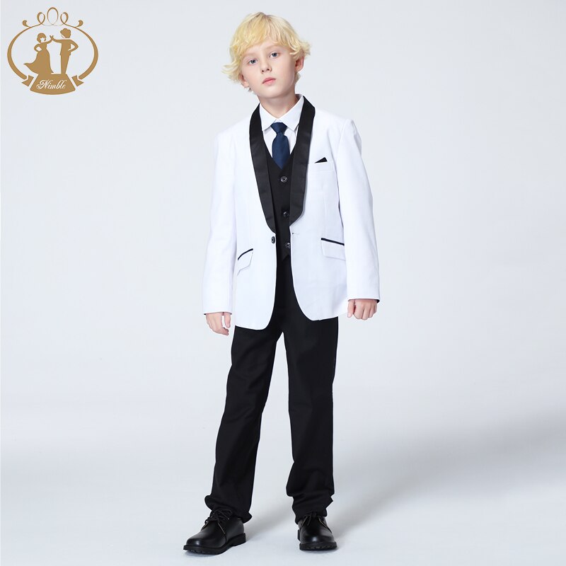 ذكيا ربيع الخريف بدلة رسمية للبنين الأطفال مضيف حفل الزفاف زي معطف سترة السراويل 3 قطعة مجموعات الملابس البيضاء بالجملة