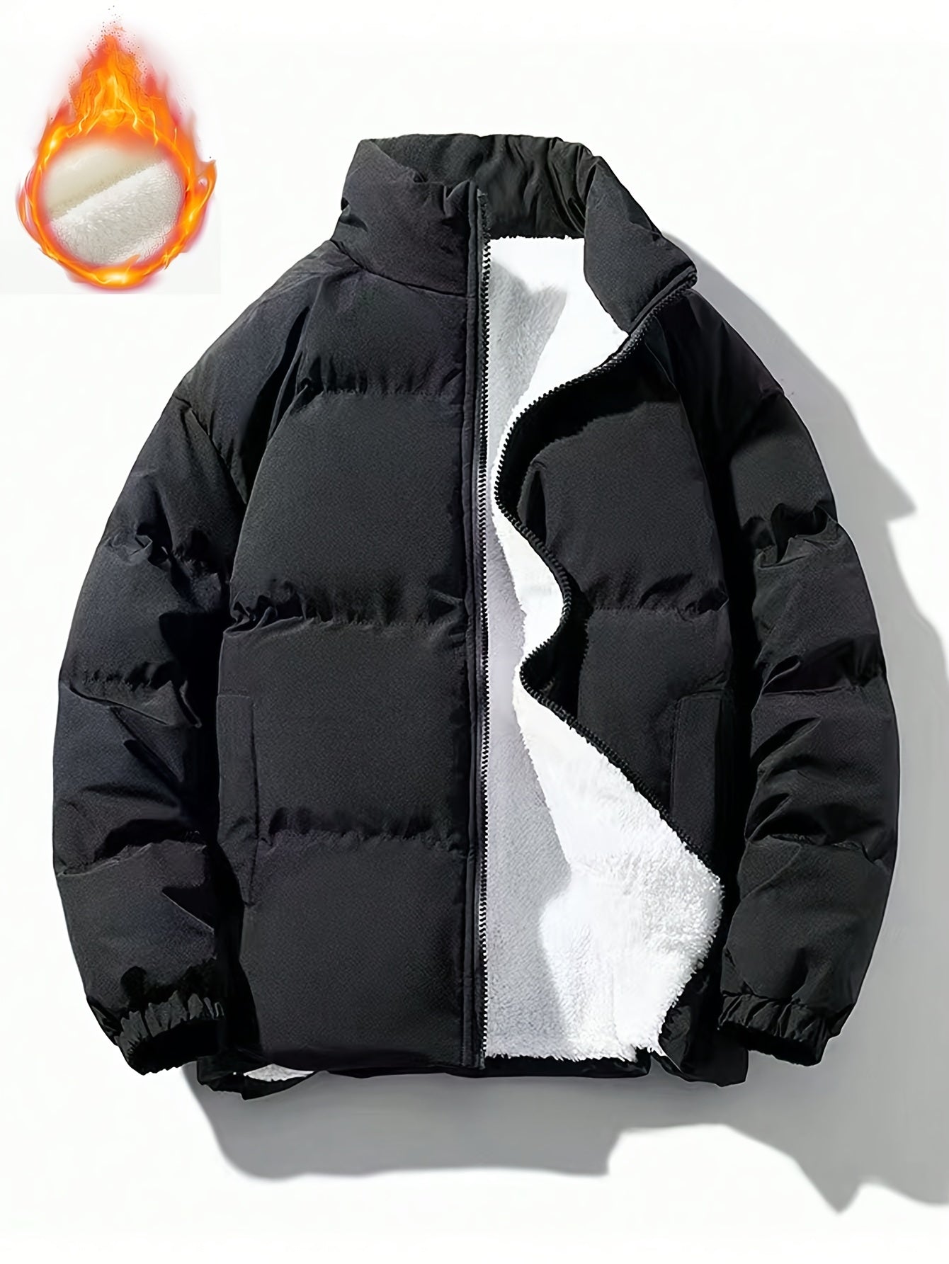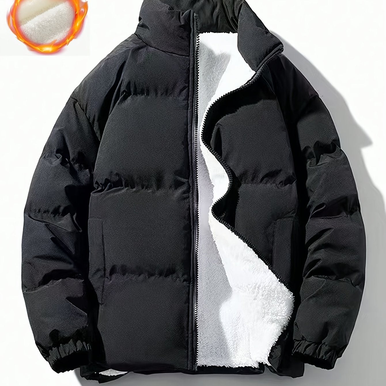 Increase quantity for جاكيت رجالي كاجوال سميك حراري بسحاب مبطن بالصوف، سترة دافئة بأكمام طويلة وياقة واقفة مقاومة للرياح مبطنة لفصل الشتاء