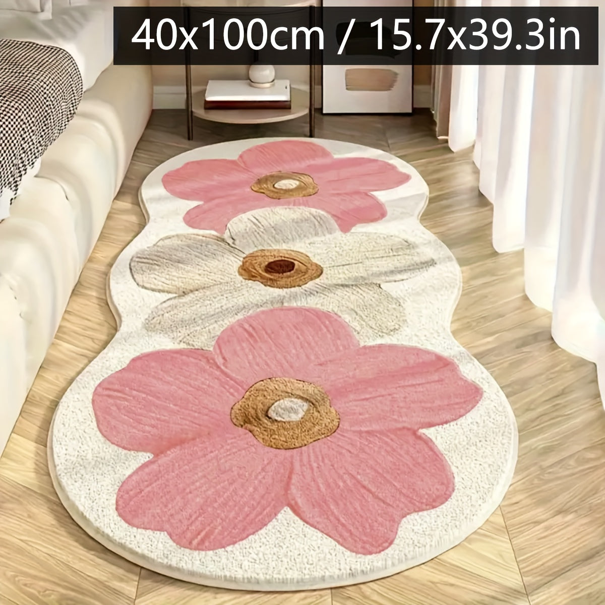 حصيرة سرير مستطيلة بنقشة زهور باللون الأزرق الداكن والبيج - بوليستر ناعم خفيف مع ظهر من البولي فينيل كلوريد، للغسيل اليدوي فقط، حصيرة أرضية غير قابلة للانزلاق لغرفة النوم وغرفة المعيشة، ديكور داخلي عصري