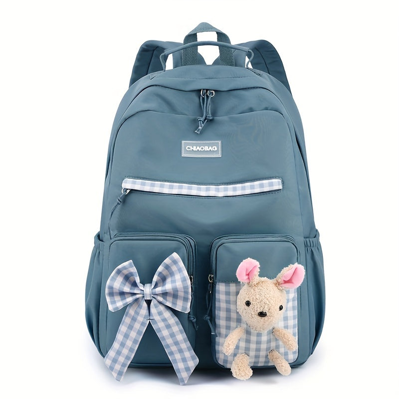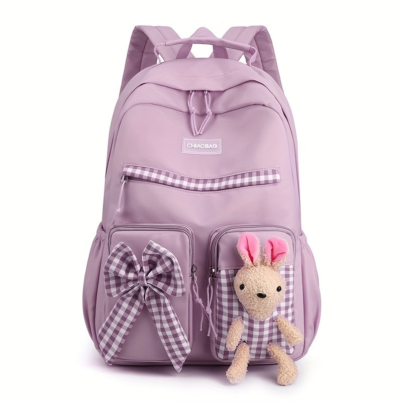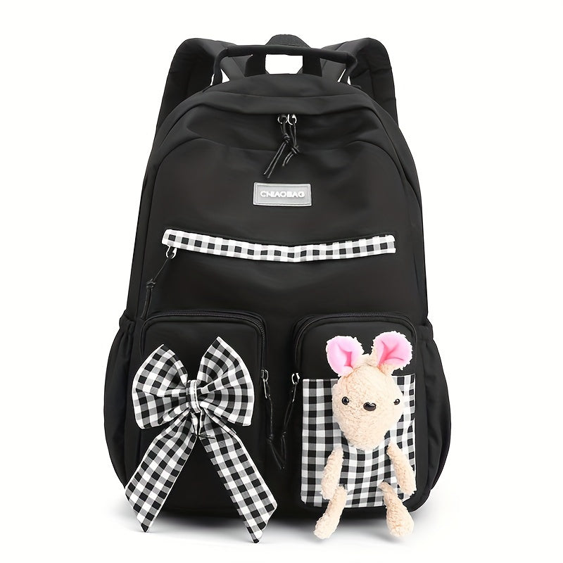 Increase quantity for حقيبة ظهر لطيفة بنمط منقوش، حقيبة مدرسية بلون واحد أنيقة، حقيبة ظهر يومية للتنقل والرحلات