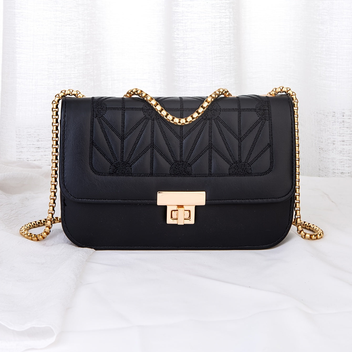 Decrease quantity for حقيبة مربعة نسائية مطرزة بأناقة، حقيبة كتف بسلسلة أنيقة، حقيبة صغيرة فاخرة عابرة للجسم