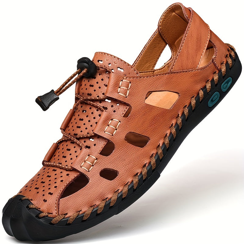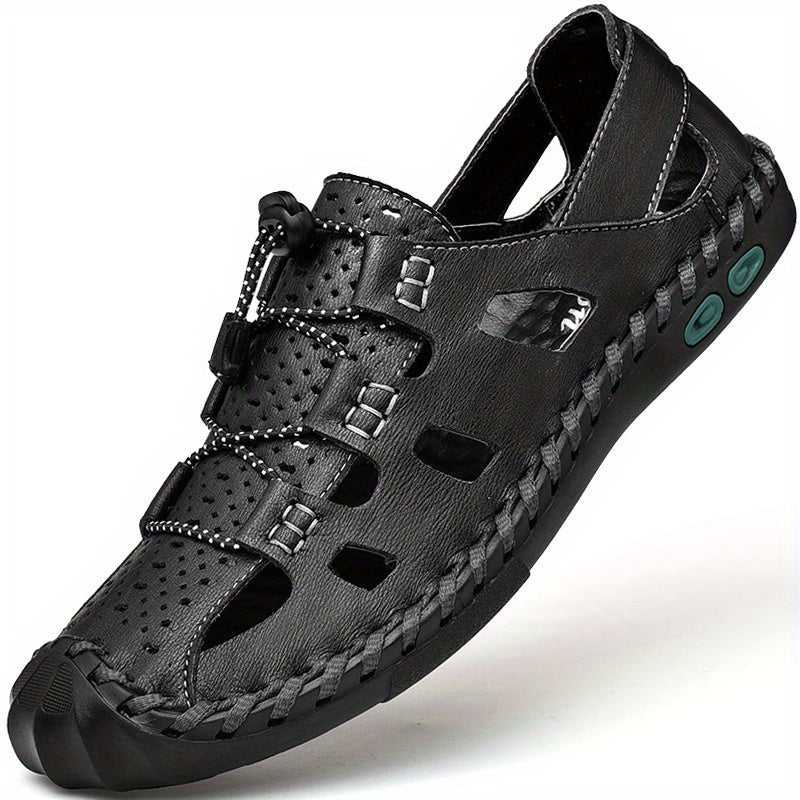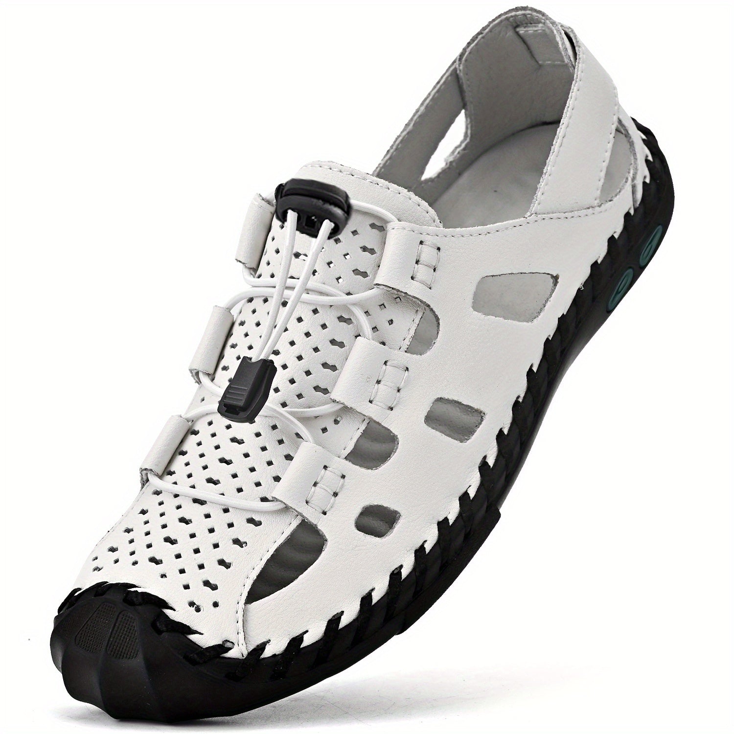 Increase quantity for شبشب رجالي ، صنادل جلدية بمقدمة مغلقة ، أحذية صياد السمك الصيفية المسامية ، حذاء شاطئي للمشي لمسافات طويلة للرجال ، بني أسود أبيض