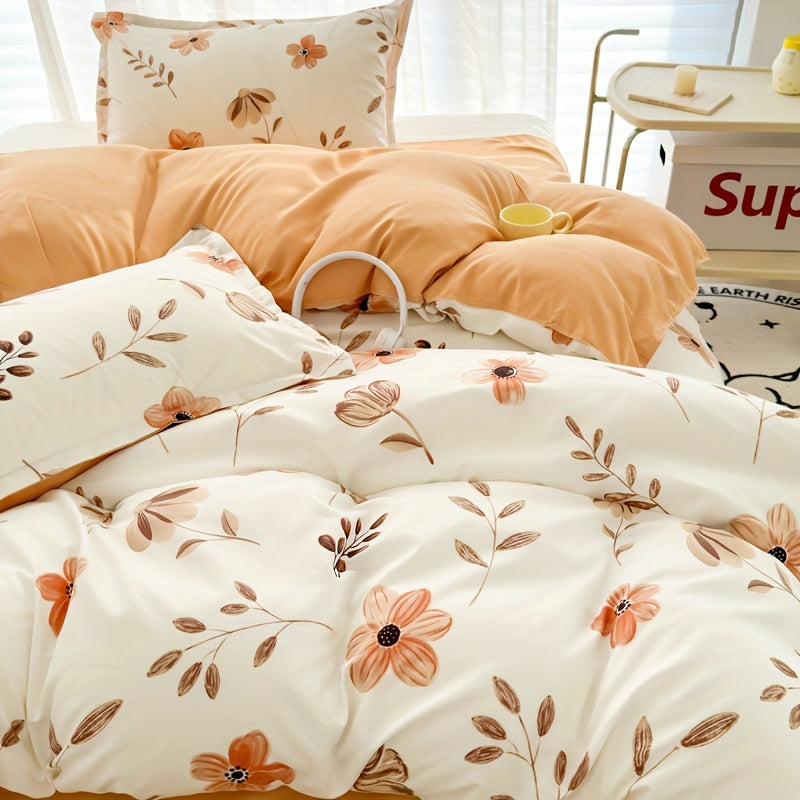 طقم غطاء لحاف ناعم ومريح 4 قطع بنقشة زهور - يشمل 1 غطاء لحاف، ملاءة مسطحة و2 كيس وسادة، قابل للغسل في الغسالة، مثالي لجميع الفصول، مثالي لغرفة النوم وغرفة الضيوف