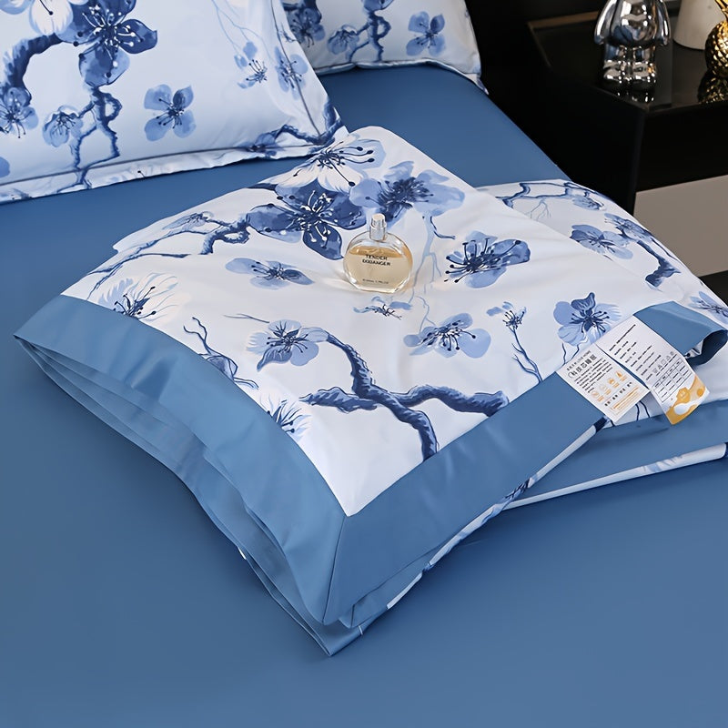 58363991-الزهور تتفتح والثروة الزرقاء-لحاف صيفي 200*230 سم + شرشف مُجهز 240*240 سم + غطاء وسادة*2