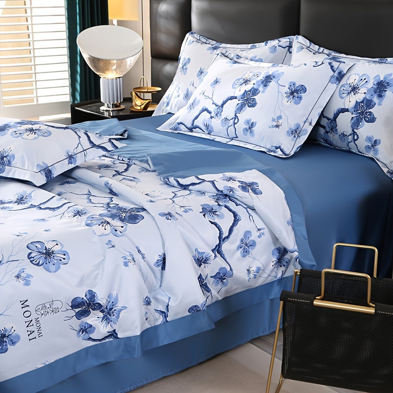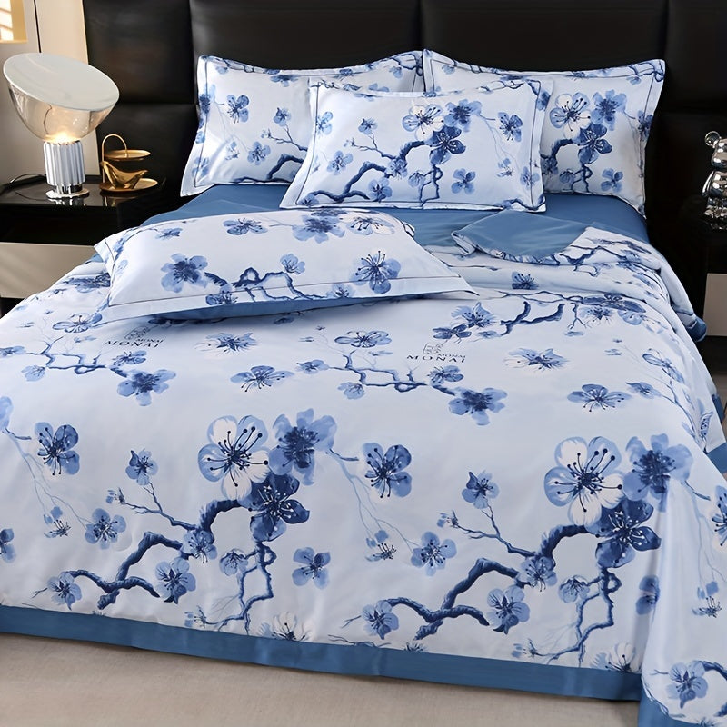 طقم مفروشات سرير صيفي بريز 4 قطع - طباعة زهور، لحاف فائق النعومة وخفيف الوزن مع أكياس وسادات متناسقة، قابل للغسل في الغسالة