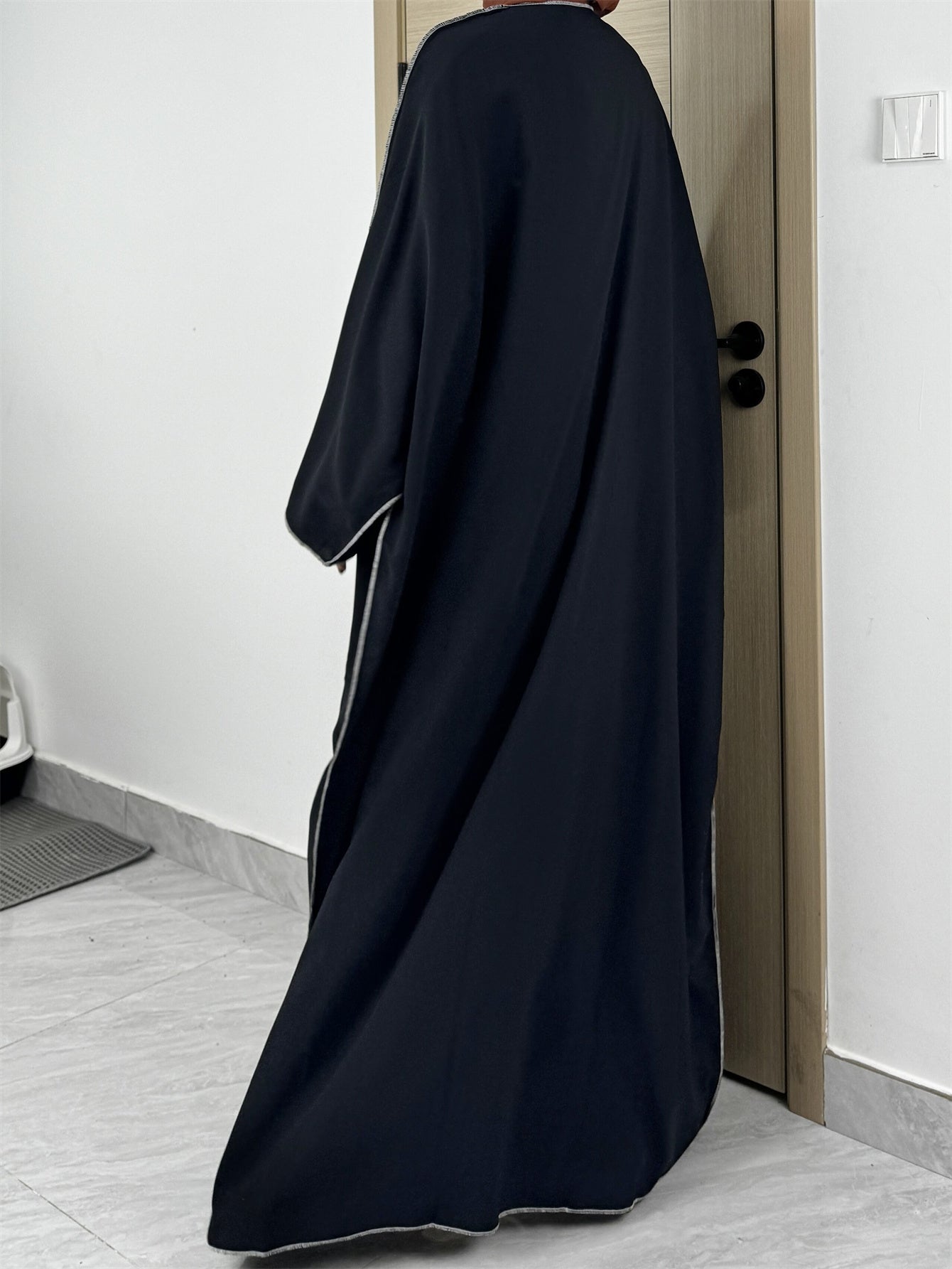 عباءة أنيقة بمقاس كبير للنساء - بأكمام طويلة، مفتوحة من الأمام، لون سادة، بوليستر - مثالية للخروجات العادية