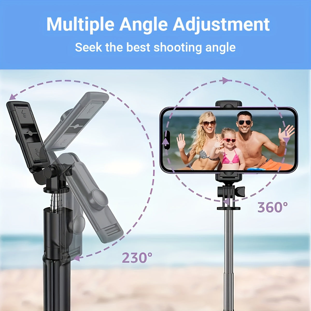 عصا سيلفي للهاتف الخلوي قابلة للتمديد 40 بوصة، حامل ثلاثي القوائم للهواتف الذكية مع جهاز تحكم لاسلكي، دوران 360 درجة للهواتف الذكية IPhone/Samsung/Android