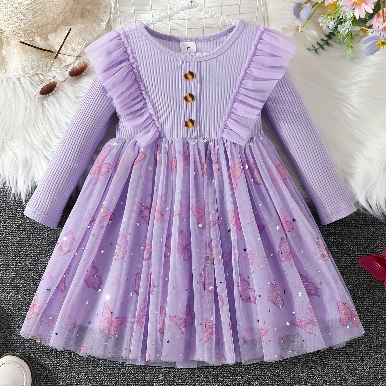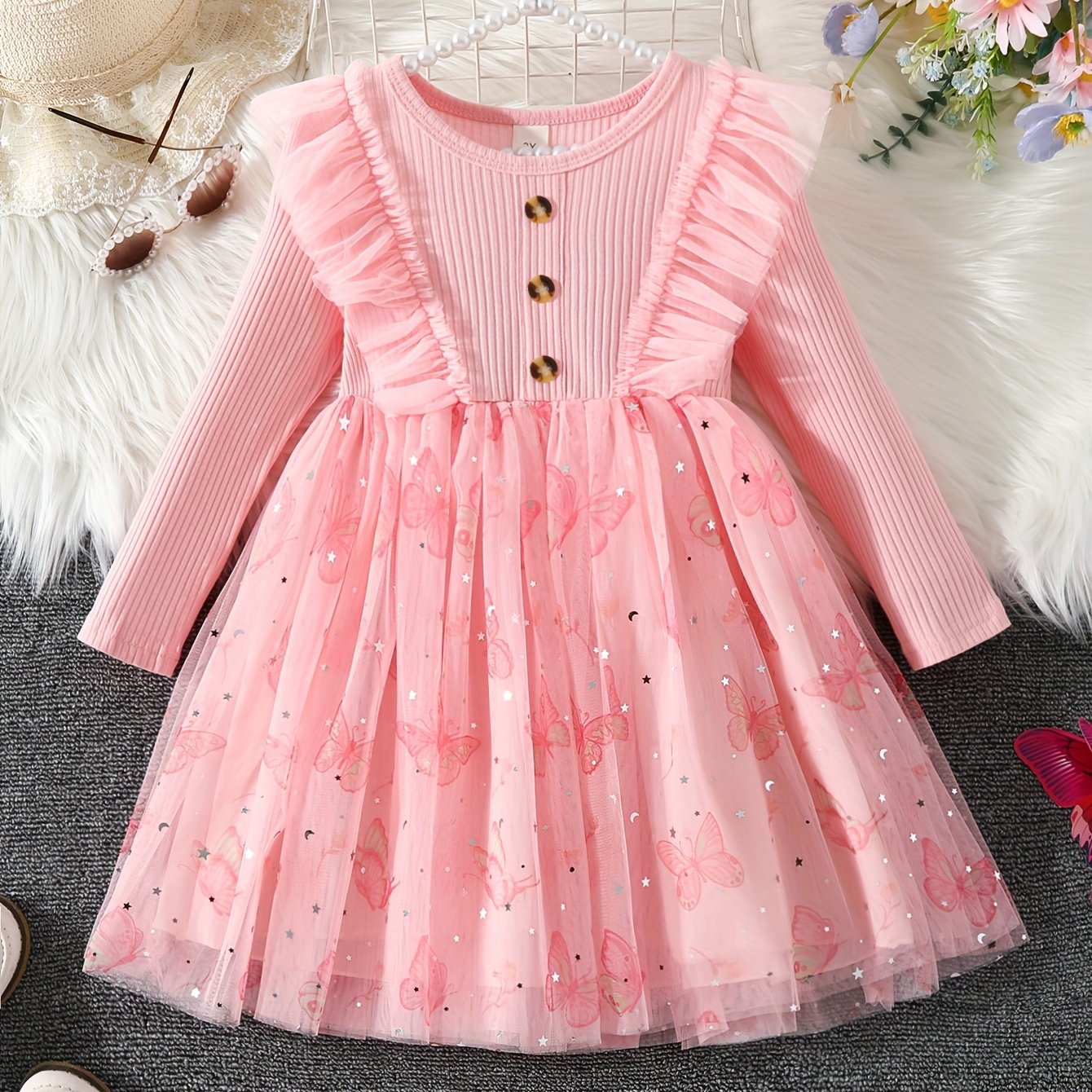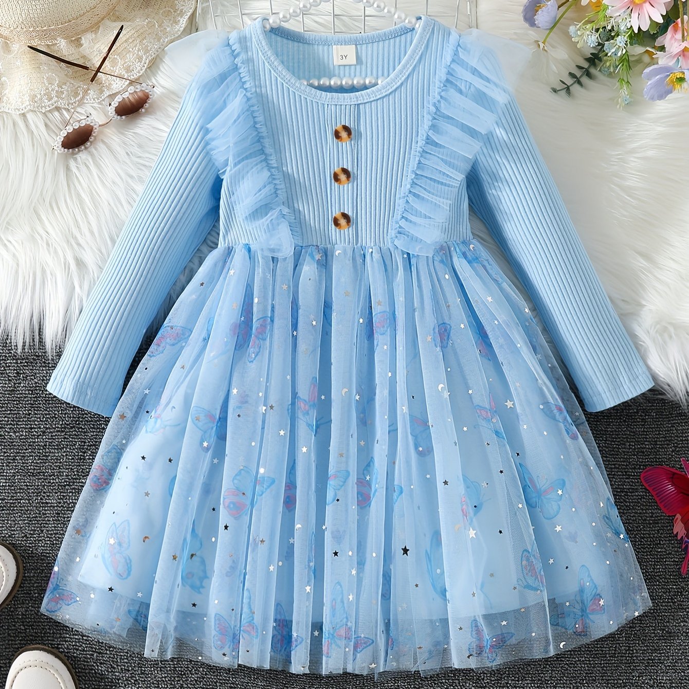 Increase quantity for فستان توتو مزين برسومات الفراشة، فساتين حالمة للفتيات، ملابس حفلات الأطفال
