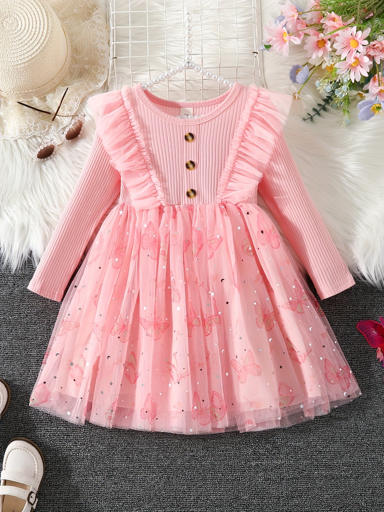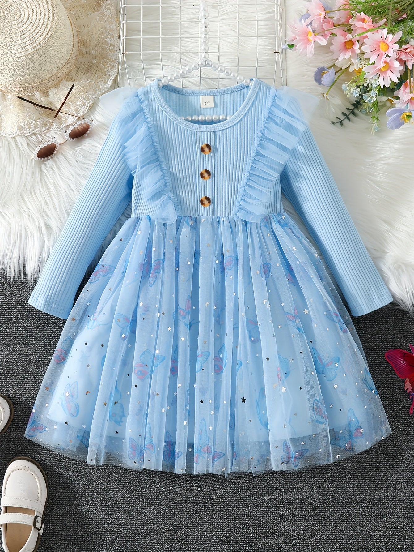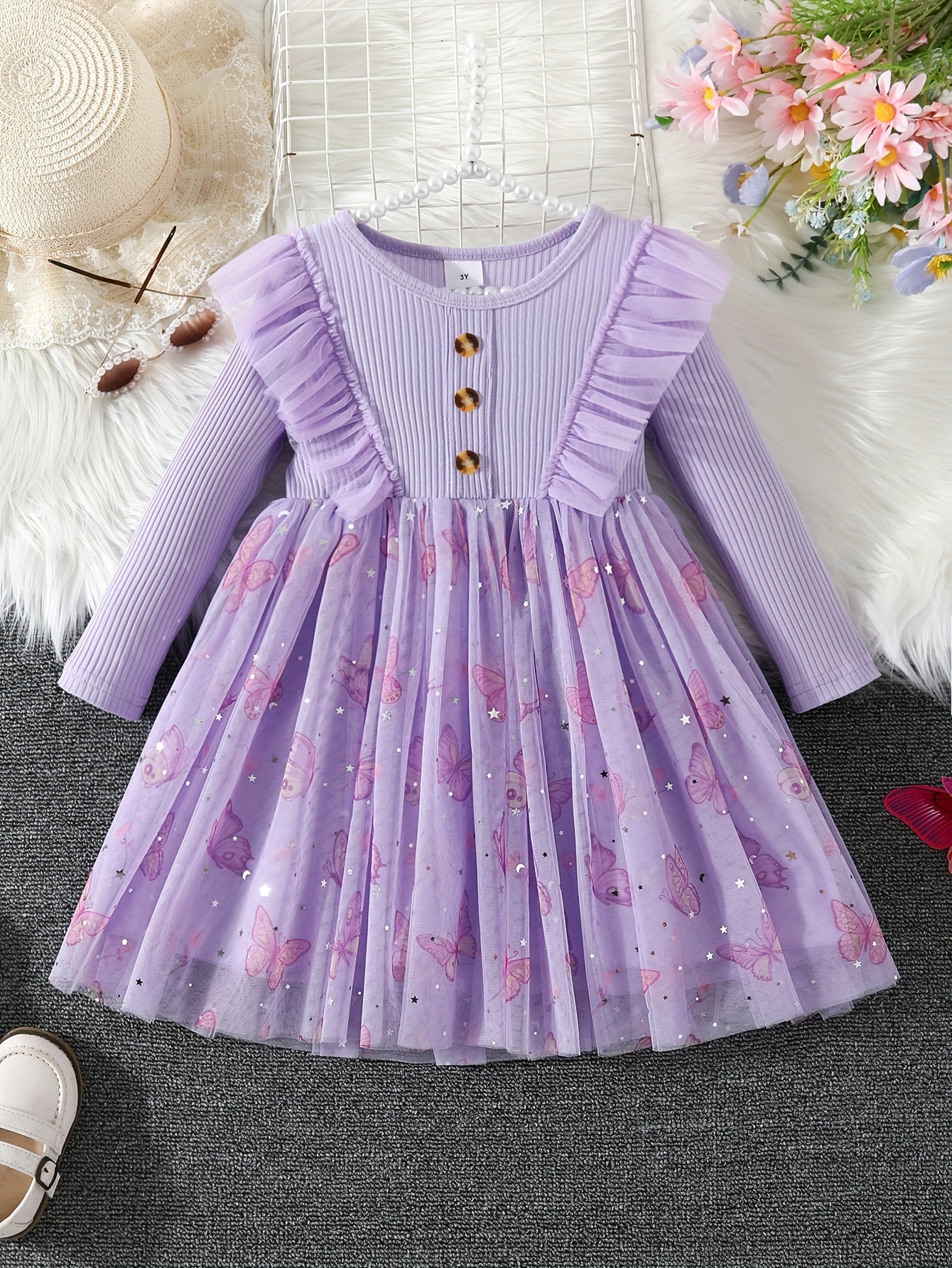 Increase quantity for فستان توتو مزين برسومات الفراشة، فساتين حالمة للفتيات، ملابس حفلات الأطفال