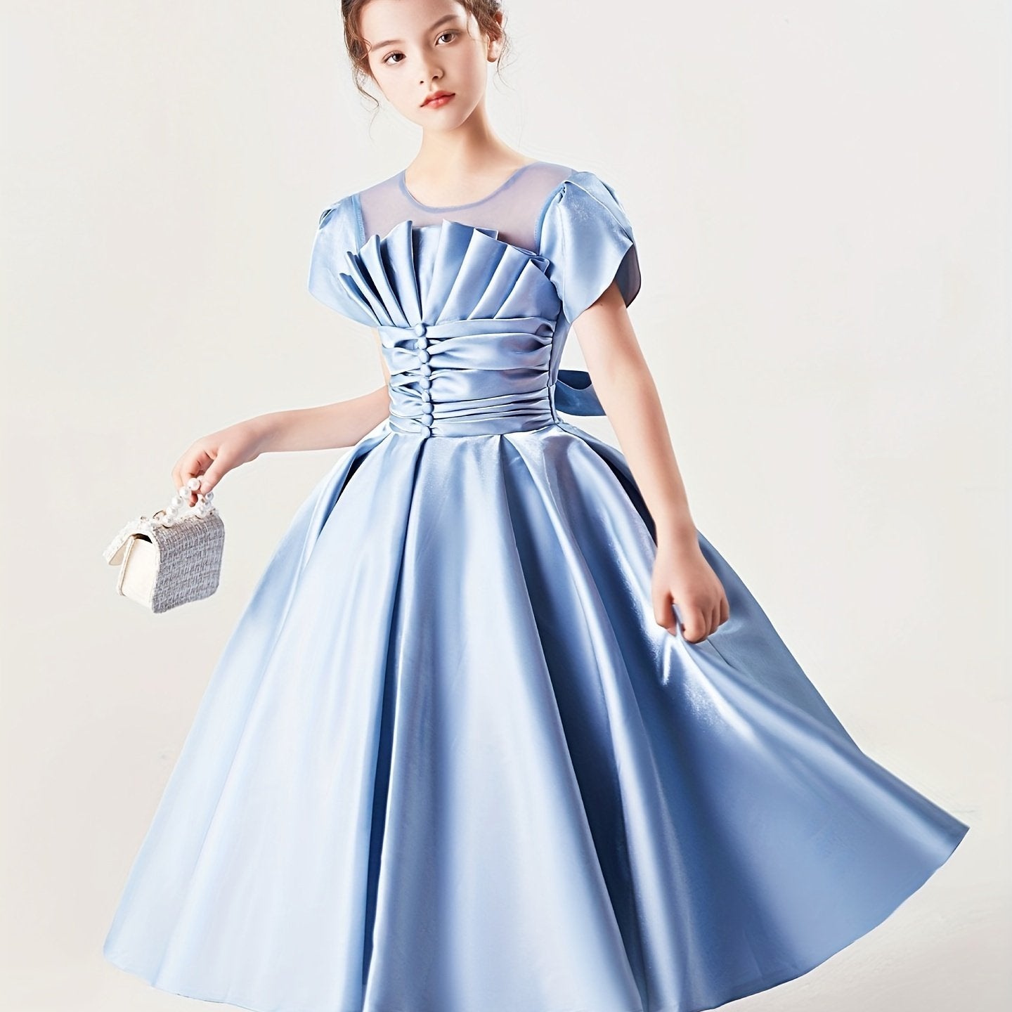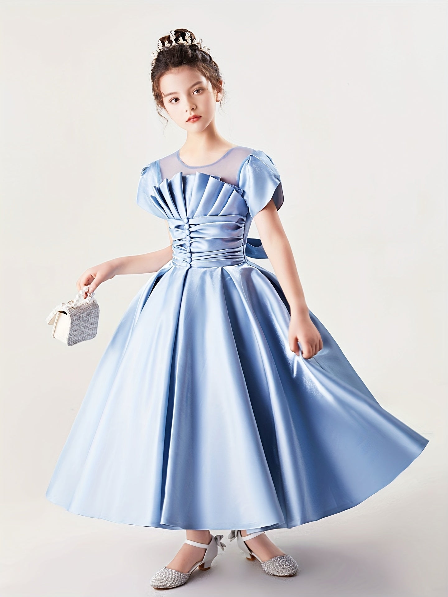 فستان حفلة تخرج رائع للفتيات، خصر مجمع وتصميم ظهر مربوط لفستان رسمي لحفلة موسيقى مساء البيانو