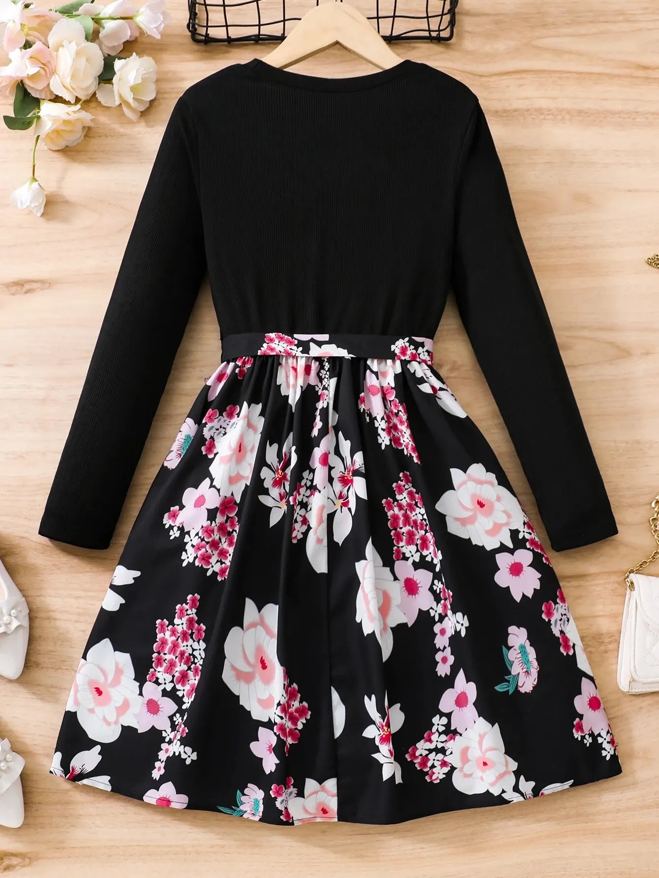 فستان Girl Blossoms بأكمام طويلة على شكل حرف A لمظهر أنيق وكاجوال، هدية ملابس للأطفال