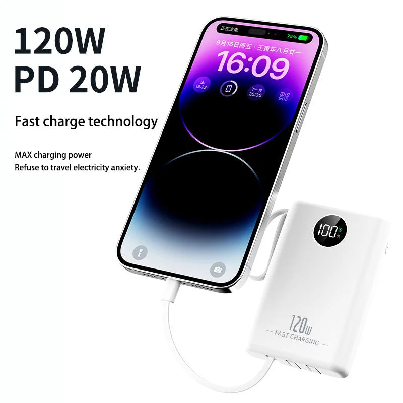 لينوفو-بنك طاقة بشاشة رقمية عالية ، السعة ، mAh ، W ، بطارية شحن فائقة السرعة ، مناسبة لهاتف آيفون ، وسامسونج ، وسواوي