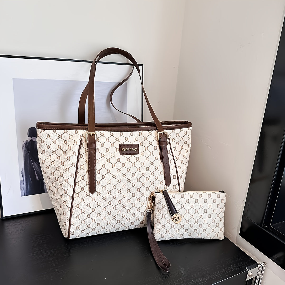 مجموعة حقيبة الكتف الكلاسيكية البسيطة: حقيبة الكتف العصرية ذات النقش المميز مع نمط هندسي مع حقيبة صغيرة للنساء في الاستخدام اليومي