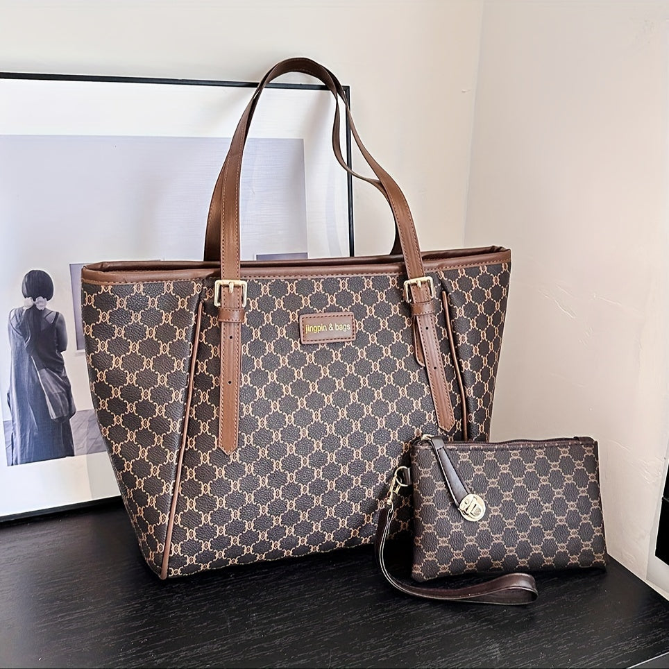 Decrease quantity for مجموعة حقيبة الكتف الكلاسيكية البسيطة: حقيبة الكتف العصرية ذات النقش المميز مع نمط هندسي مع حقيبة صغيرة للنساء في الاستخدام اليومي