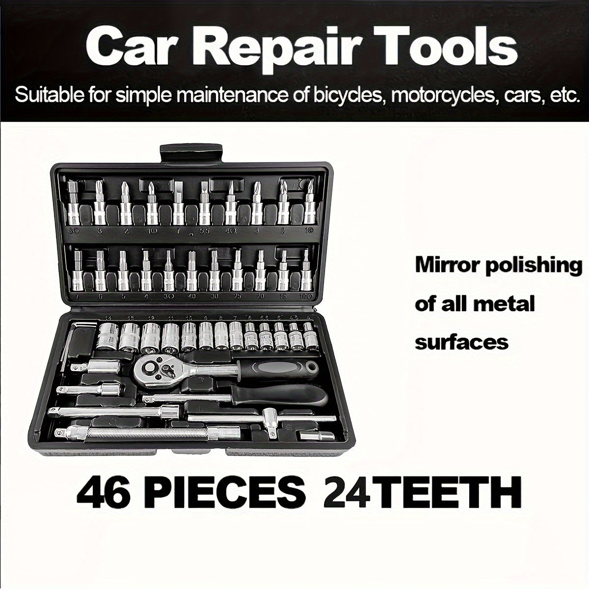 مجموعة مفاتيح راتشيه مكونة من 46 قطعة مع مقابس وبتات من الفاناديوم الفولاذي، مجموعة إصلاح إطارات احترافية للسيارات والدراجات النارية والدراجات - أدوات يدوية متينة مع حقيبة حمل منظمة