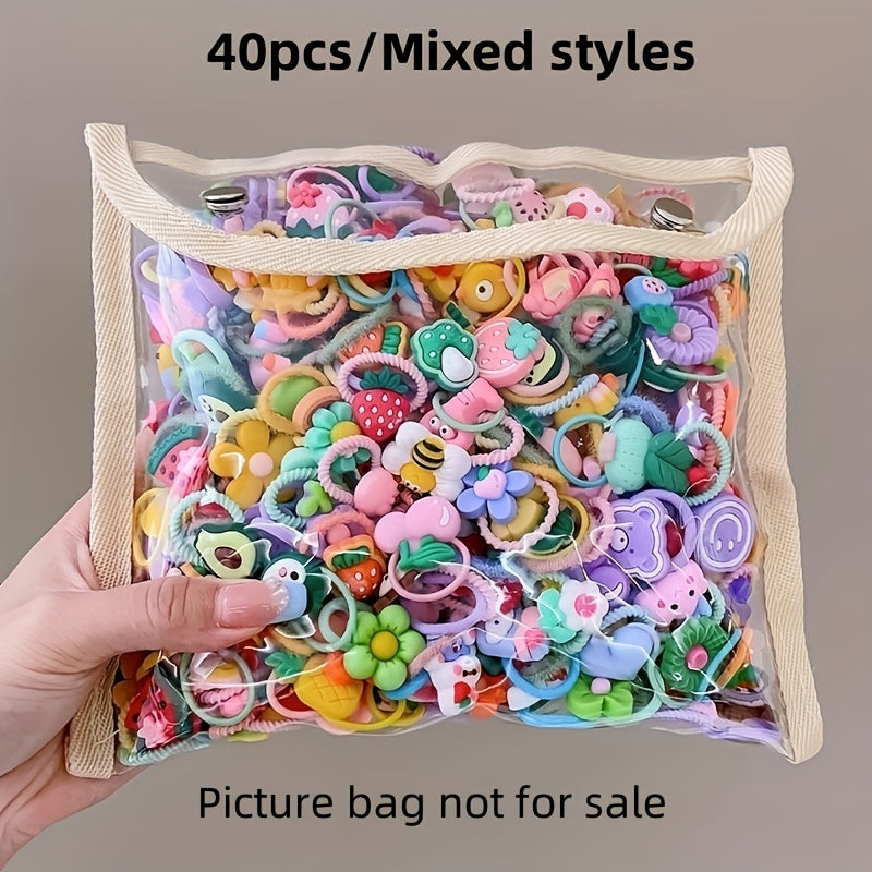 Increase quantity for مجموعة من 10-40 قطعة من ربطات الشعر الكرتونية الجميلة بأشكال الفواكه والزهور، إكسسوارات شعر للفتيات، هدية للأطفال