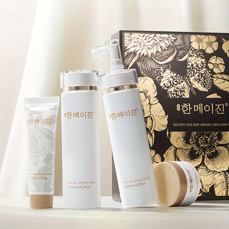 مجموعة هدايا للعناية بالبشرة ضد التجاعيد من HANMJ Golden Time، مكونة من 4 قطع مع نيسيناميد - ترطيب بشكل لوشن ومجموعة عناية بالوجه للترطيب والتشدد