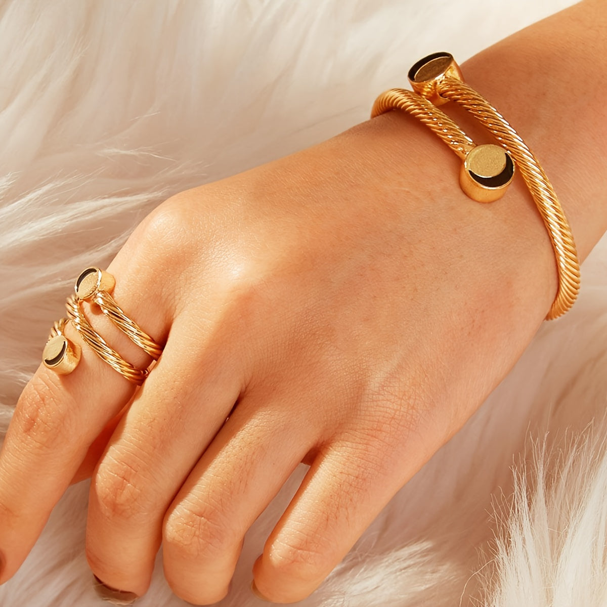 1 خاتم + 1 سوار مجموعة مجوهرات أنيقة بتصميم هندسي يتناسب مع الملابس اليومية وإكسسوارات الحفلات مناسبة للرجال والنساء