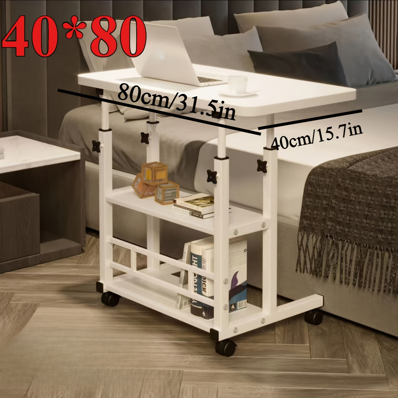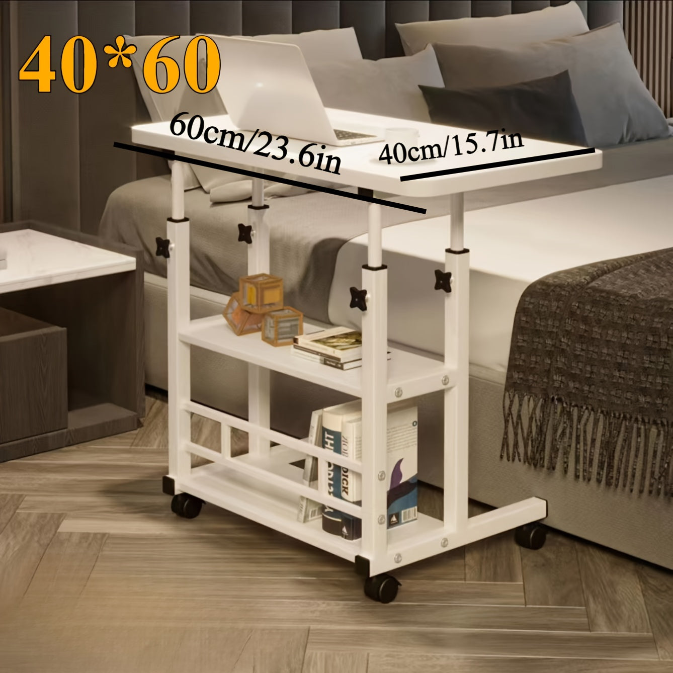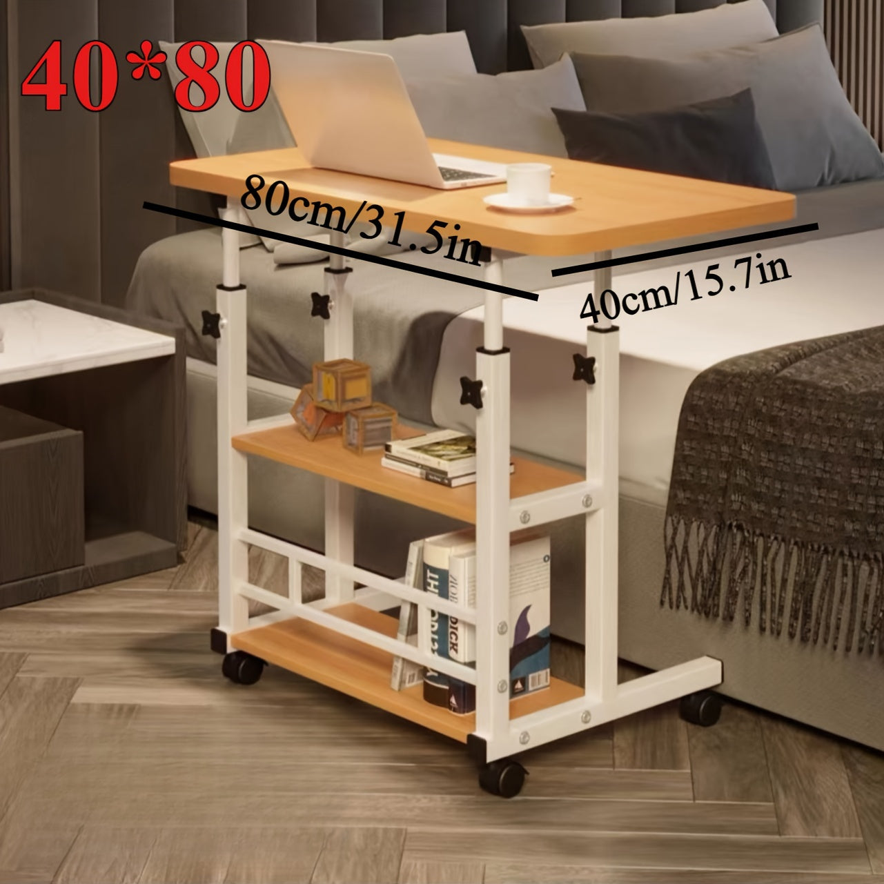 مكتب كمبيوتر متنقل قابل للتعديل بارتفاع مزدوج مع رفوف تخزين، منضدة خشبية متعددة الاستخدامات للكمبيوتر المحمول فوق السرير للغرفة والمكتب