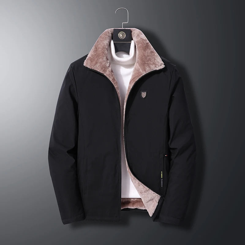 ملابس خارجية مقاومة للماء من الصوف السميك الدافئ للرجال بياقة واقفة مع سترة كلاسيكية من الفرو للشتاء