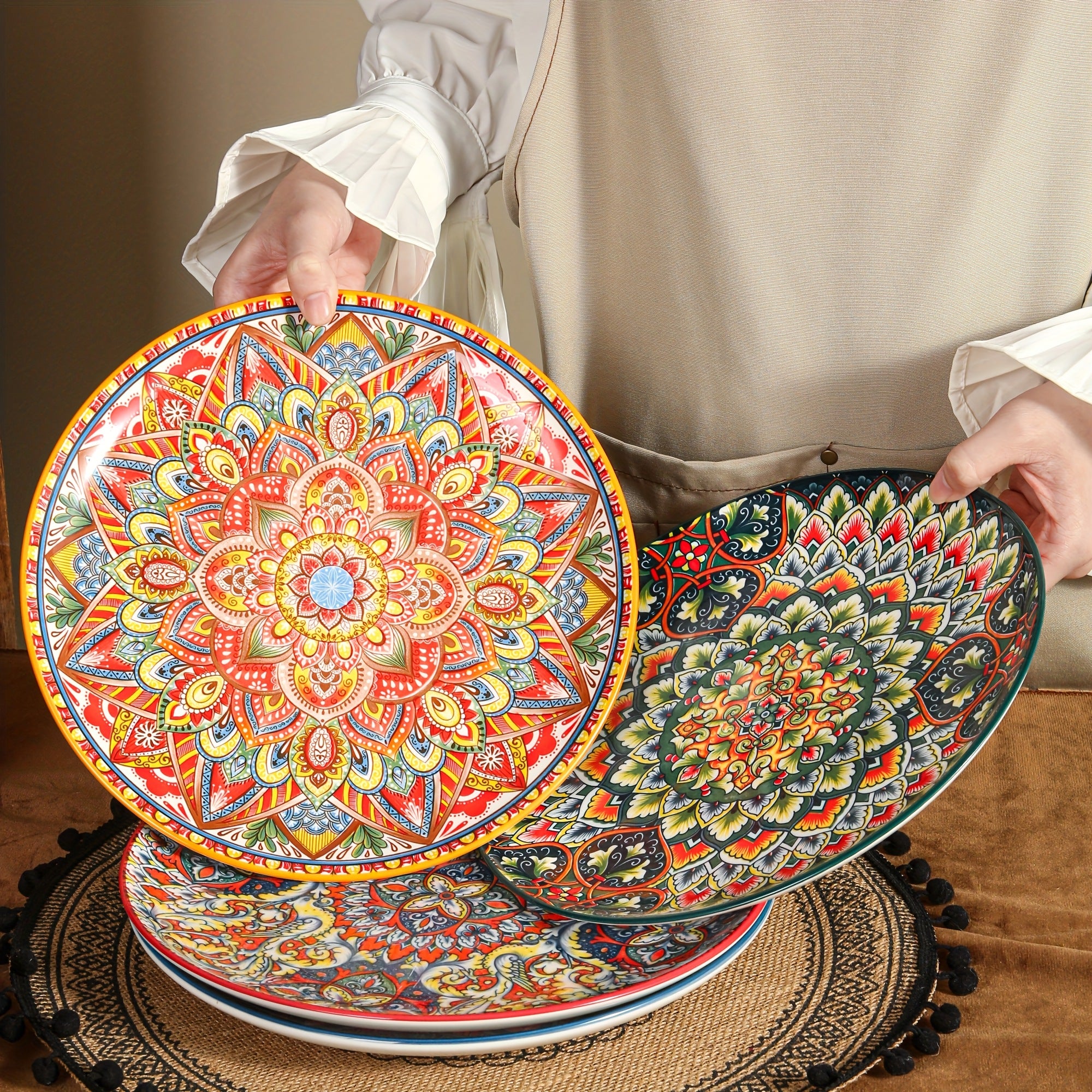 46098943-طقم صحون مسطحة مقاس 10.5 بوصة، قطعتان (برتقالي + أخضر)
