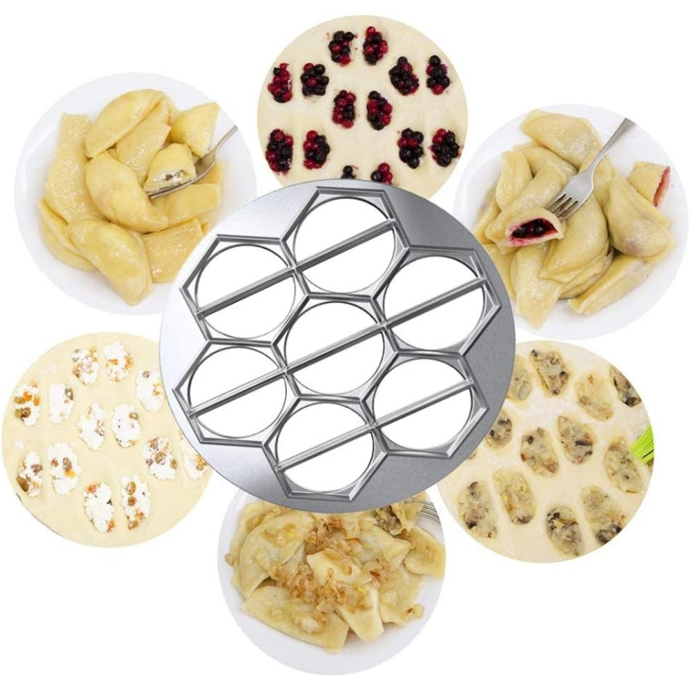 قالب ضغط حلوى وخبز شديد التحمل بـ 14 فتحة | مصنوع من سبائك الألومنيوم/الستانلس ستيل، صانع معكرونة متعدد الفتحات لصنع وانتونات وبيروغي وساموسا ويمبانادا منزليًا - صغير الحجم للاستخدام في التخييم وإنتاج كميات كبيرة - هدية مثالية للطهاة