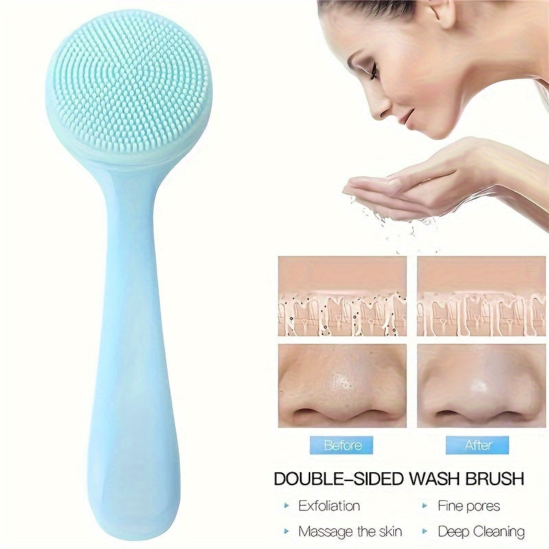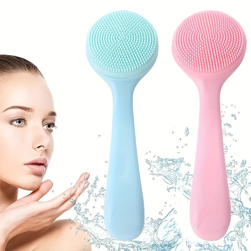 1/2 قطعة فرشاة تنظيف الوجه اليدوية من السيليكون، صديقة للبشرة ومقاومة للماء، تستخدم لإزالة الرؤوس السوداء والرؤوس البيضاء وبقايا المكياج - أزرق ووردي