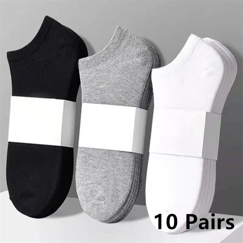 بي مارت 10 أزواج من الجوارب القطنية للرجال نمط جديد أسود وأبيض ورمادي جوارب رجال الأعمال ناعمة قابلة للتنفس للصيف للذكور