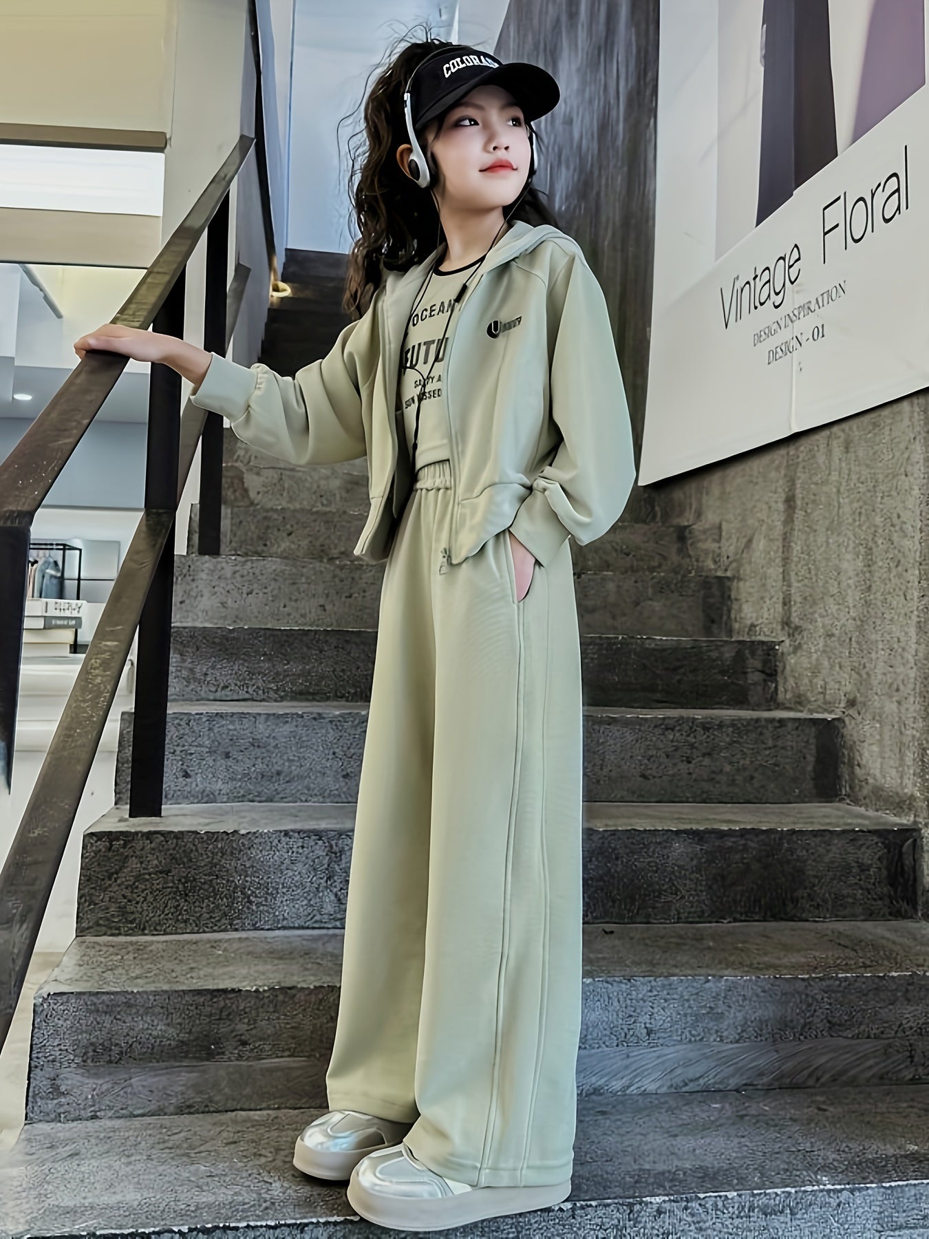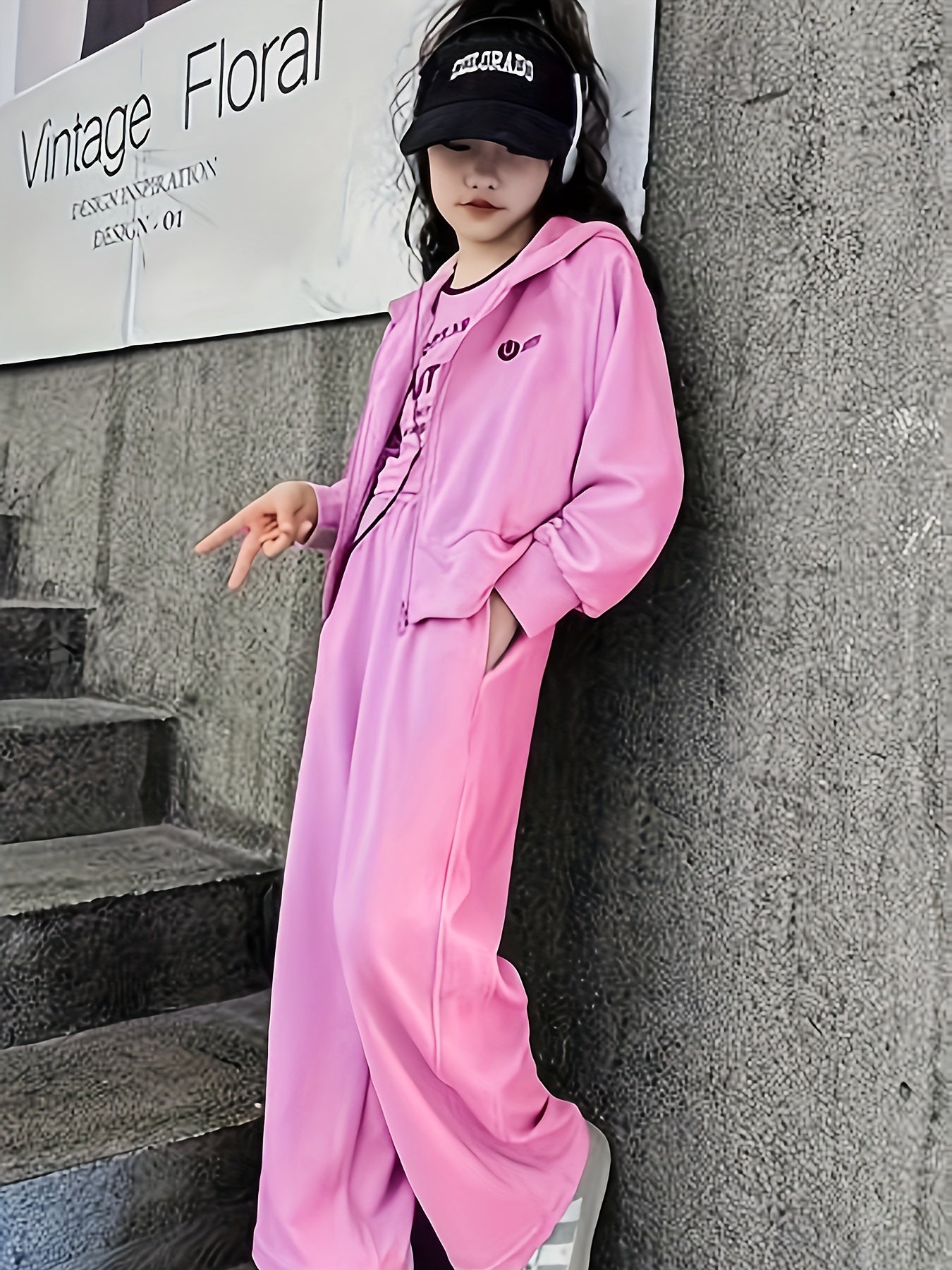 Increase quantity for 2PCS بنات موضة و فضفاضة بسحاب هودي سترة وسروال، ربيع/خريف ملابس كاجوال للرياضة، ملابس الشارع