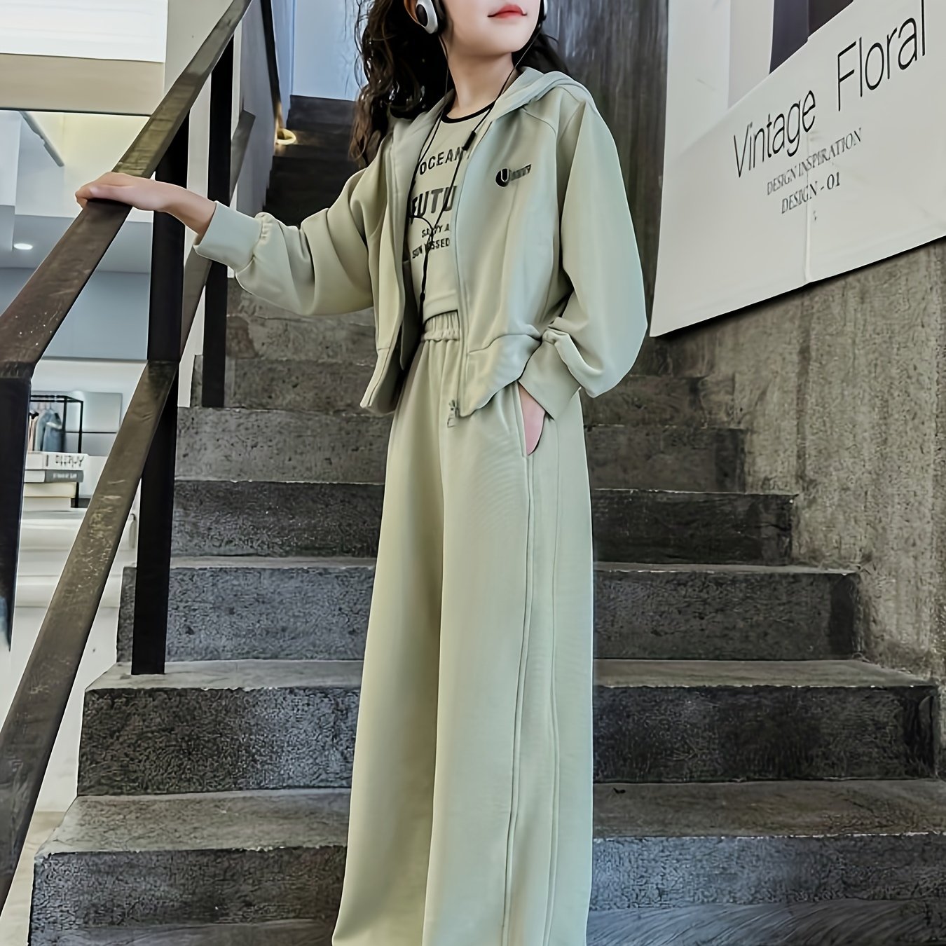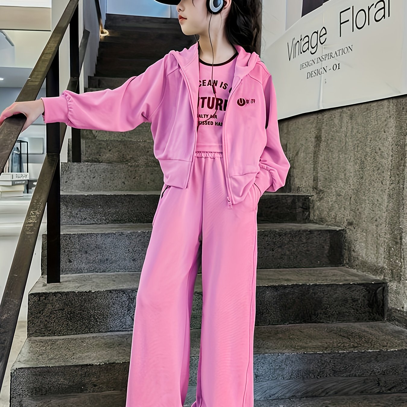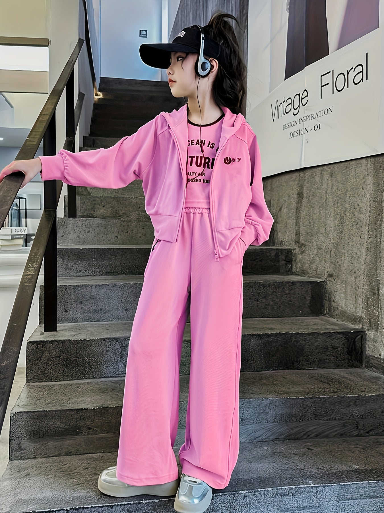 2PCS بنات موضة و فضفاضة بسحاب هودي سترة وسروال، ربيع/خريف ملابس كاجوال للرياضة، ملابس الشارع