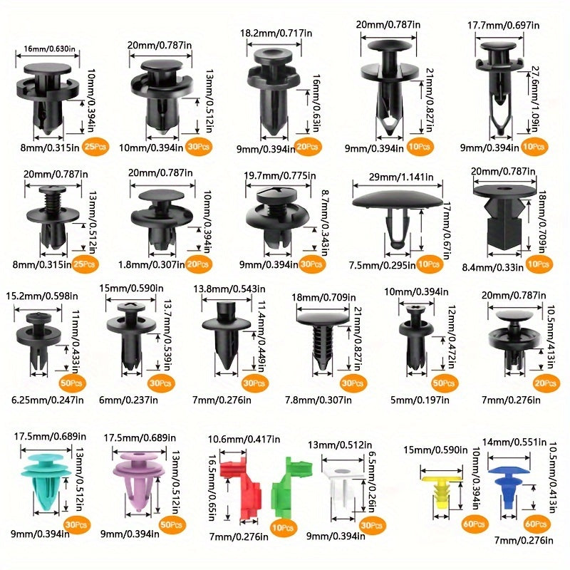 725 قطعة مشبك تثبيت سيارة ومجموعة مشبكات سريعة للسيارة المواد: مصنوعة من نايلون متين الأحجام: 23 حجمًا شائعًا للغاية، 680 قطعة / مجموعة قائمة التعبئة: أداة إزالة مشبك الريفيت المعدني الفولاذي المقاوم للصدأ عالي الجودة 4 أدوات إزالة تقليم السيارة 30 قطعة وسادة إسفنجية 5 قطع بلاستيكية لربط الكابلات الطويلة 5 قطع بلاستيكية لربط الكابلات القصيرة ملاحظة: يرجى التحقق من الحجم والنوع والشكل في الصور والوصف أولاً للتأكد من أن العنصر هو الذي تحتاجه