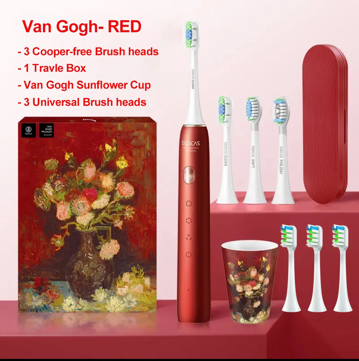 فرشاة أسنان كهربائية SOOCAS Van Gogh X3U باللون الأخضر، فرشاة أسنان بالموجات فوق الصوتية، مطورة من النوع C، قابلة للشحن السريع للبالغين، مقاومة للماء IPX7